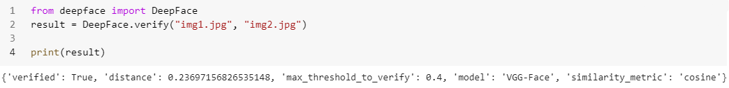 result = DeepFace.verify("img1.jpg", "img2.jpg")